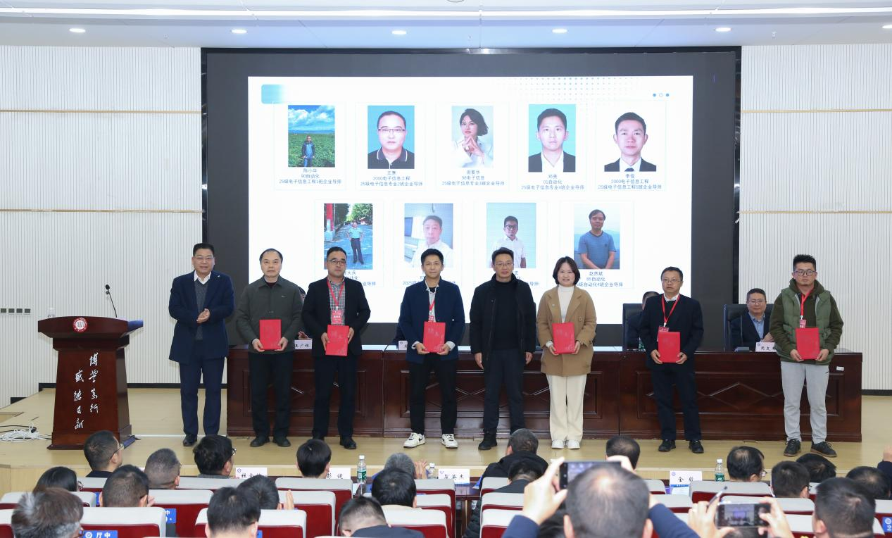 与六家企业签署了ICT现代产业学院共建协议,并举行了2025级企业导师聘任仪式,聘请赵然斌、陈小华、周要华等18位优秀校友担任新生班级企业导师,助力学生提升工程实践能力与职业素养。