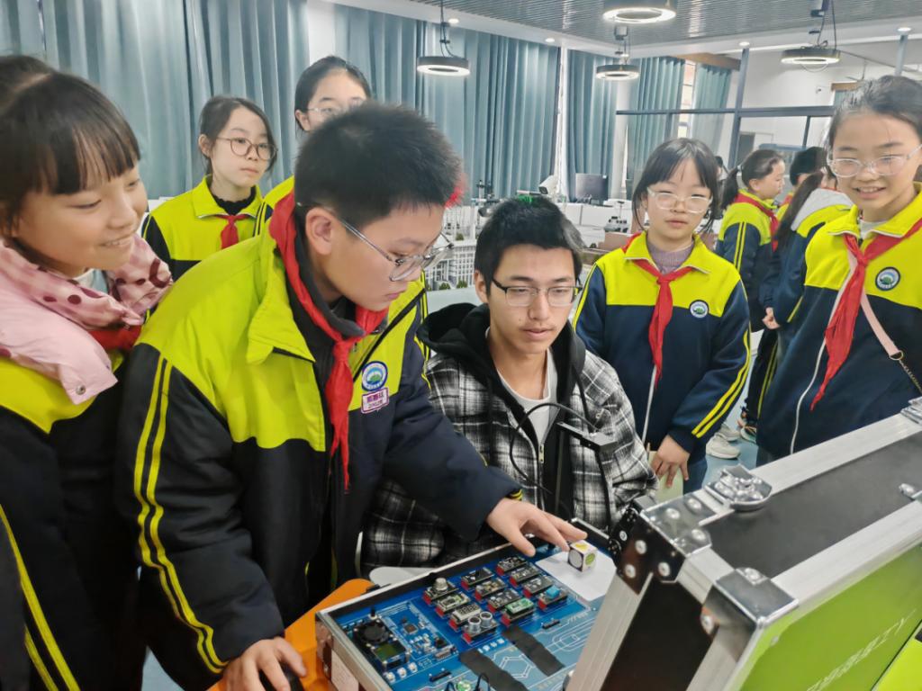 在人工智能主题长廊,学生们系统听取了关于人工智能发展脉络与应用领域的讲解,通过具象化展示,对人脸识别、智能驾驶、智慧医疗等技术的实际场景有了直观认知。