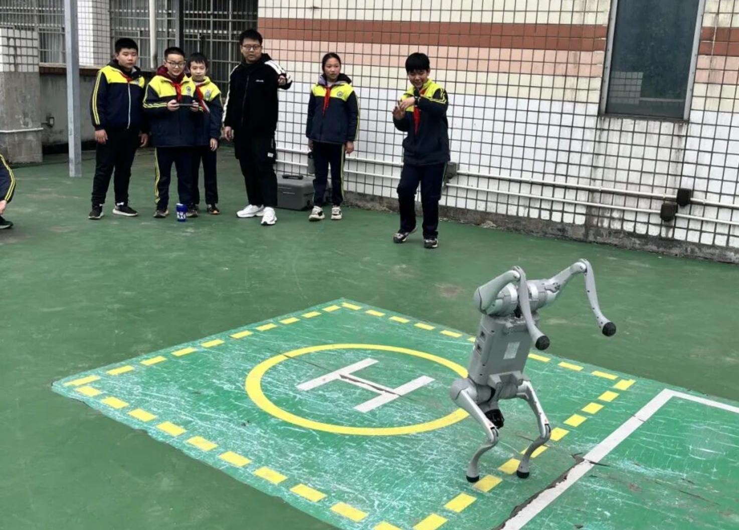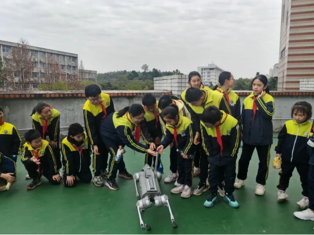 智能机器狗演示环节反响热烈。机器狗在指令下完成握手、绘画、跳跃等一系列精准动作,其灵活表现引发了学生们的广泛兴趣与积极互动,充分展现了智能机器人的技术魅力与科普价值。