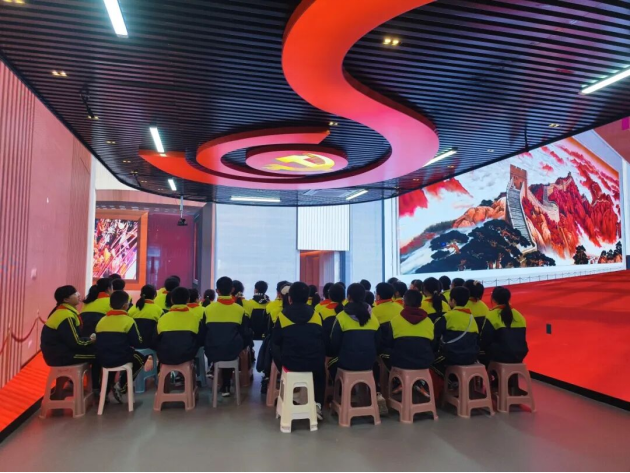 作为本次研学活动的重要组成部分,师生一行还至马克思主义学院虚拟仿真实验室进行参观学习。借助U型全景屏,学生们沉浸式观看了中国共产党历史展览馆数字化展陈,并在毛泽东思想专题展区,通过珍贵文献、历史影像与专业讲解,系统学习了毛泽东思想的发展历程与实践意义。