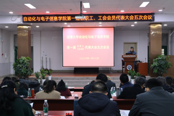 第一届教职工、工会会员代表第五次会议在工科楼阶梯教室隆重召开。学院领导班子成员、教职工代表等参加会议。