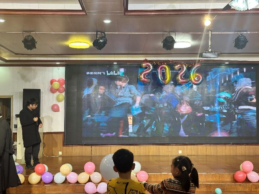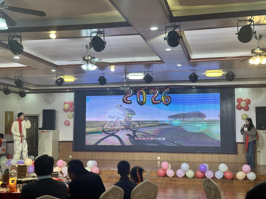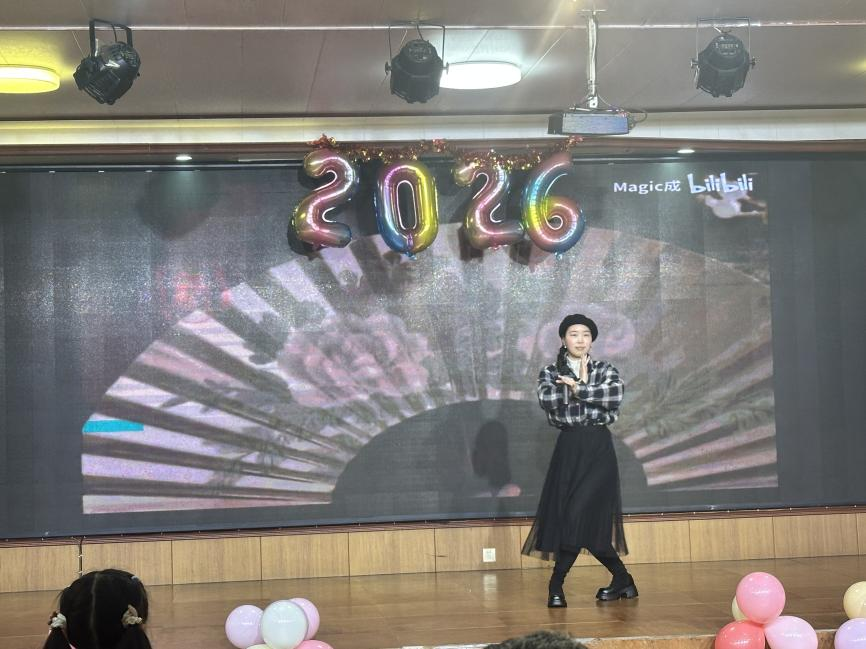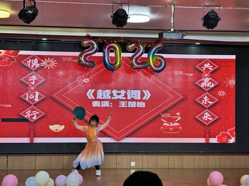 之后联欢晚会精彩上演。节目内容丰富多彩,包括舞蹈《越女词》、书法表演《纸墨》、歌曲《新贵妃醉酒》《Baby》《倔强》《暗里着迷》《最炫民族风》《如愿》以及朗诵《新年颂歌》。现场还穿插了幸运抽奖、数字礼盒游戏、“你比我猜”、“听歌识曲”和“互踩气球”等互动环节,将现场气氛推向高潮。