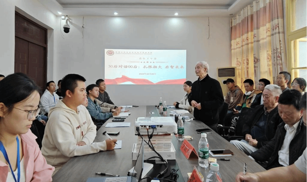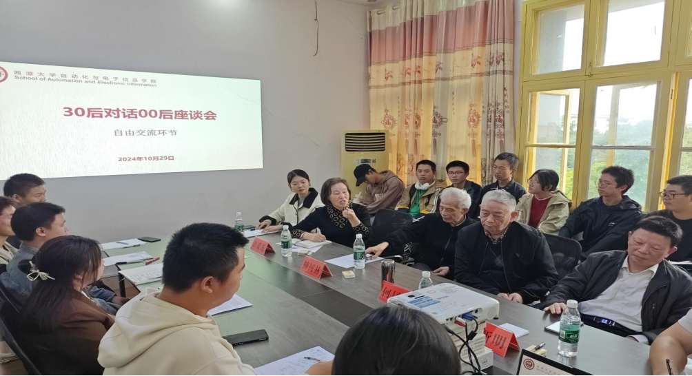 开展“扎根湘大,梦想传承”30后对话00后师生交流座谈会。学院老教师柳树林、何凤庭和校关工委主任李新明应邀出席,学院党委副书记郭凤安、关工委副主任彭爱莲、辅导员彭驿雅及2024级新生各班级班长团支书等四十余人参加此次座谈会。本次会议由彭驿雅主持。